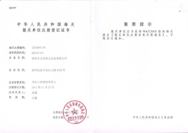 海關報關單位注冊登記證書